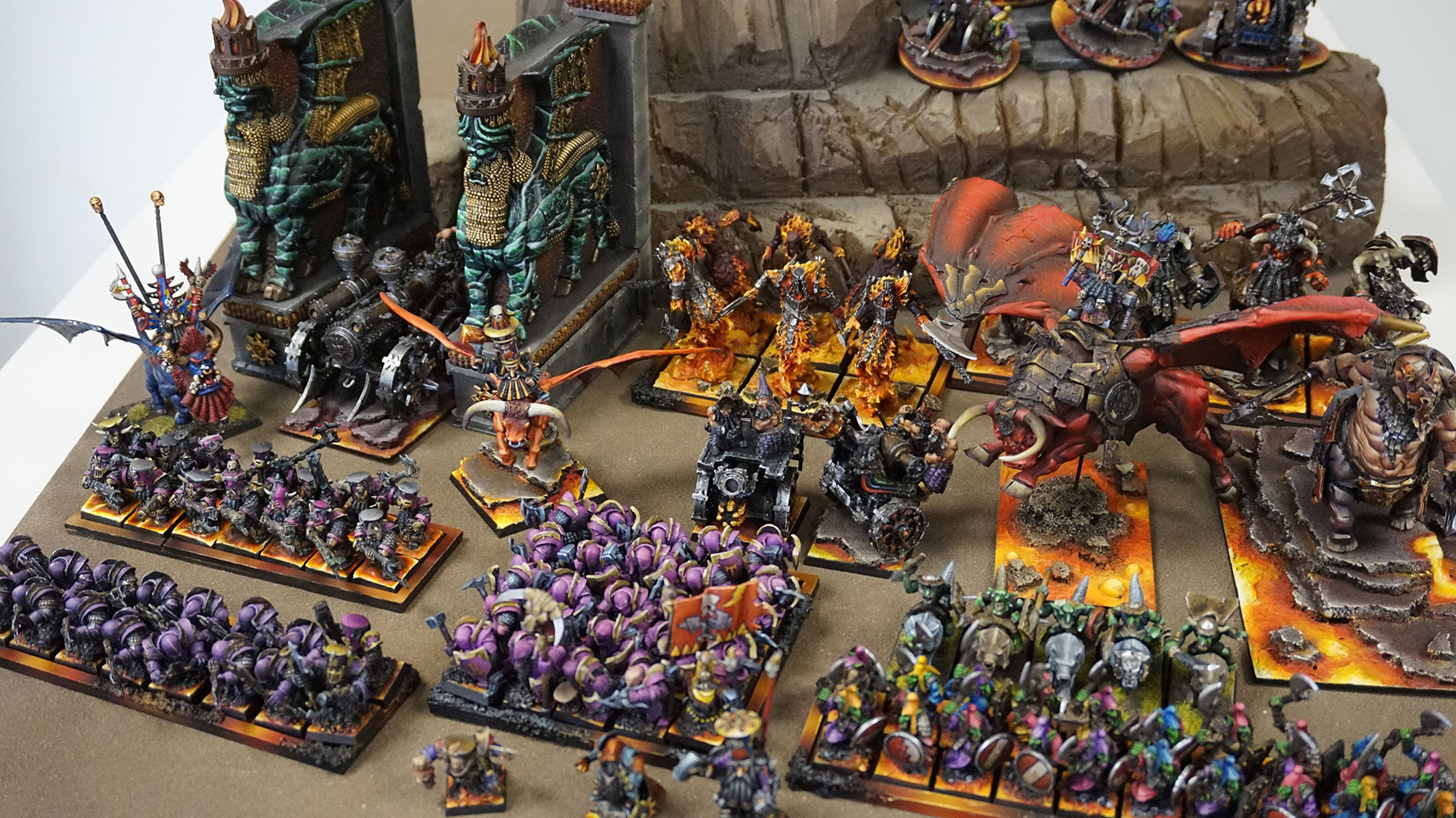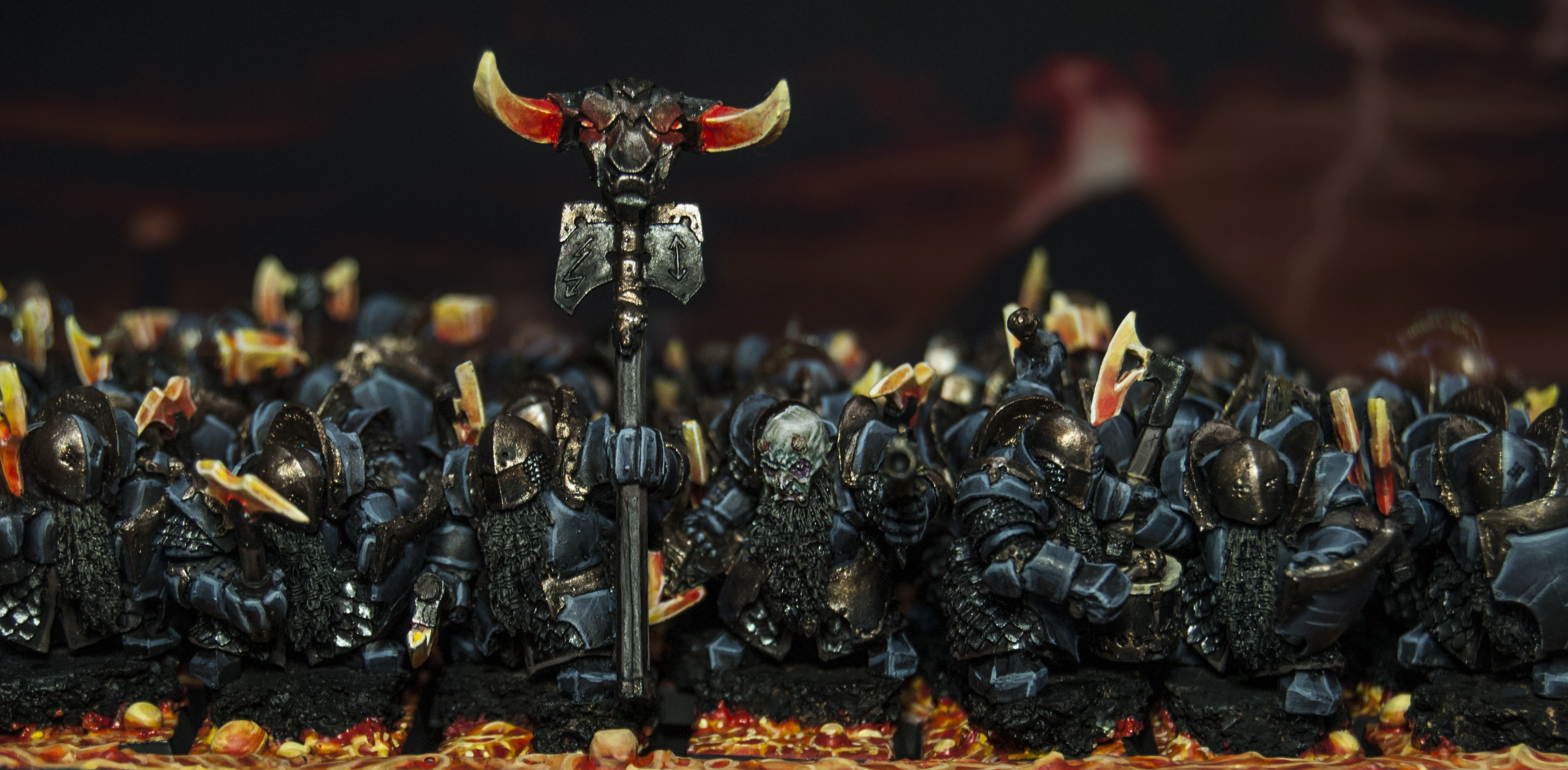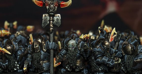 Fuelled by the mightiest industries and magics of the world, the Infernal war machine turns its unstoppable wheels within the great citadels of the Blasted Plain. Born in suffering, smoke and cataclysm, a fire burns in the heart of this indomitable people, a flame that fuels a great hunger for glory and a callous cruelty towards all who stand in the way. Slave masters and earth shakers, children of great gods, many have come to know the terrible juggernaut of the Infernal Dwarves.